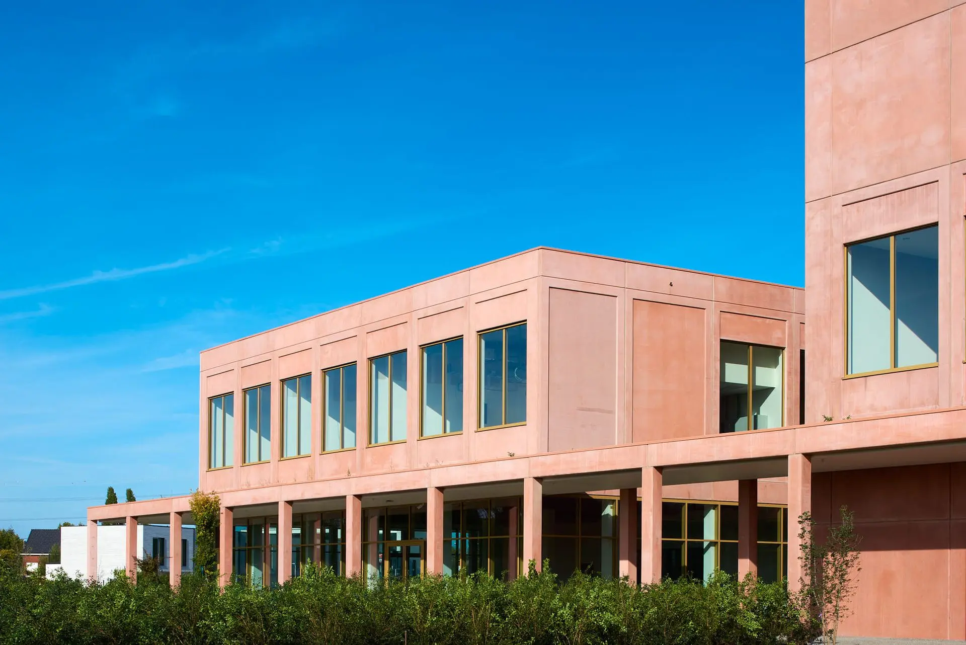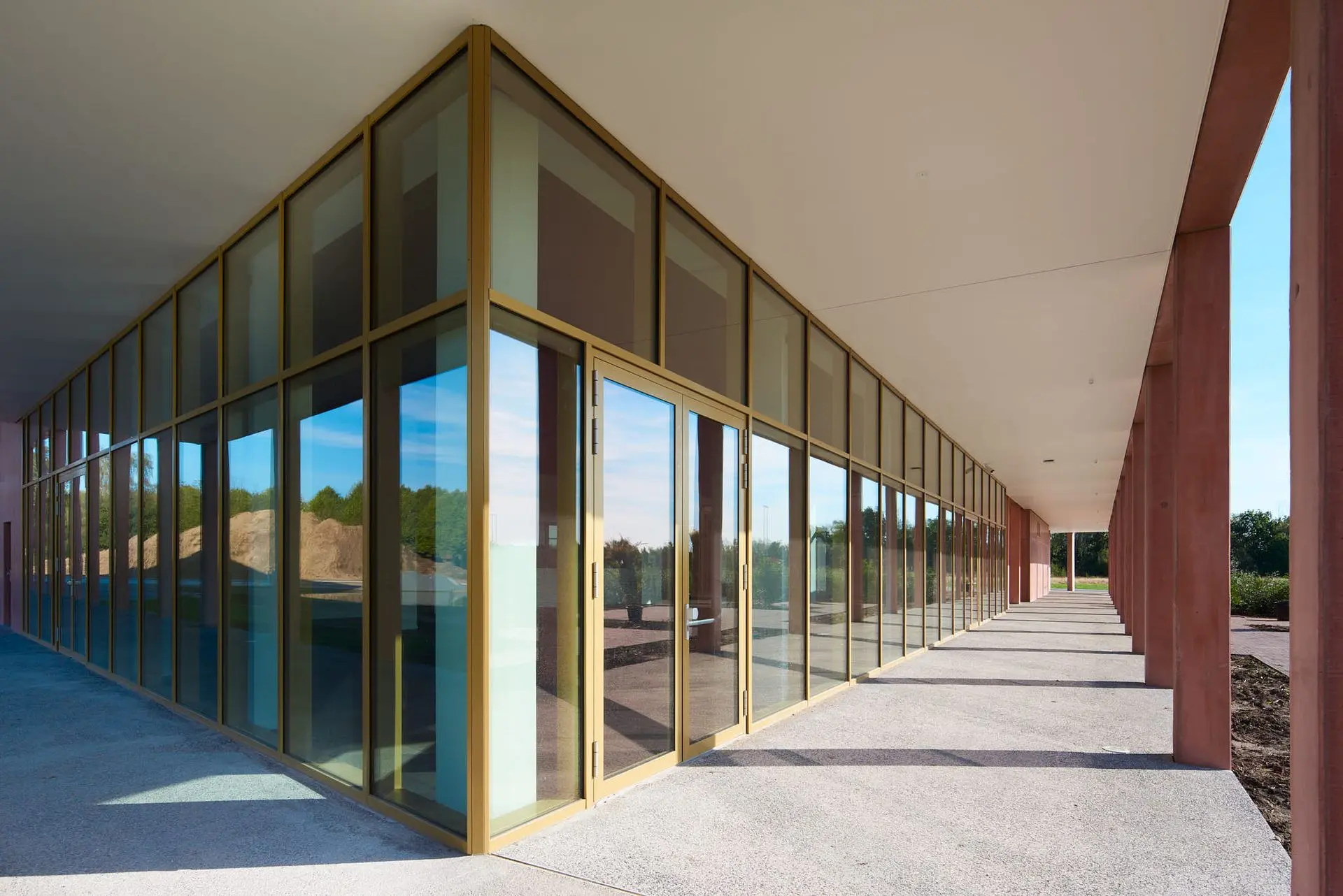 De Provinciale Ontwikkelingsmaatschappij (POM) Antwerpen bouwde het Wetenschapspark in Niel verder uit met dit centrumgebouw ISALA. Deze landmark in een opvallende terracotta tint is een realisatie van het consortium bestaande uit architectenbureau met zicht op zee, studiebureau Arcade en bouwonderneming Cordeel. Aliplast partner Stalku Geveltechniek leverde en monteerde alle aluminium gevelelementen op een wel heel korte periode. De Star 75 ramen en deuren en het vliesgevelsysteem MC Wall van Aliplast Aluminium Systems, gepoedercoat in de kleur 8C04AN, geven dit gebouw mooie ‘gouden’ accenten.