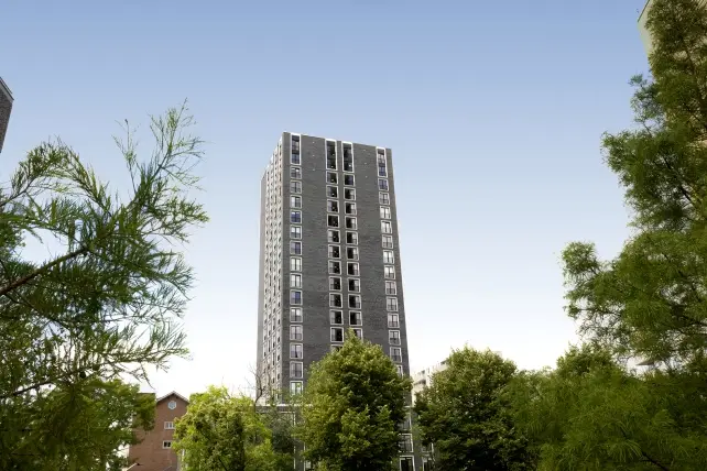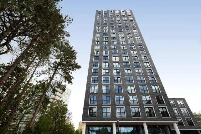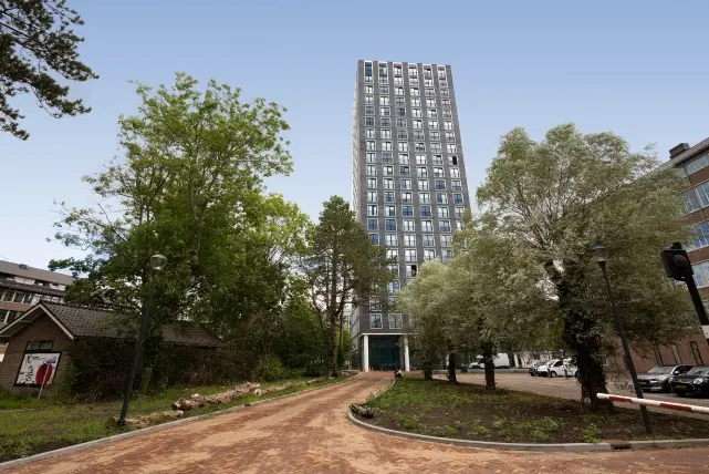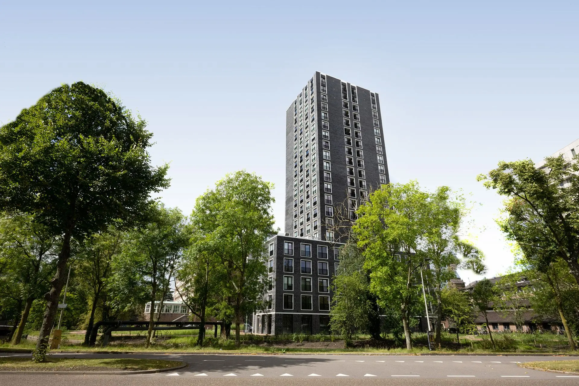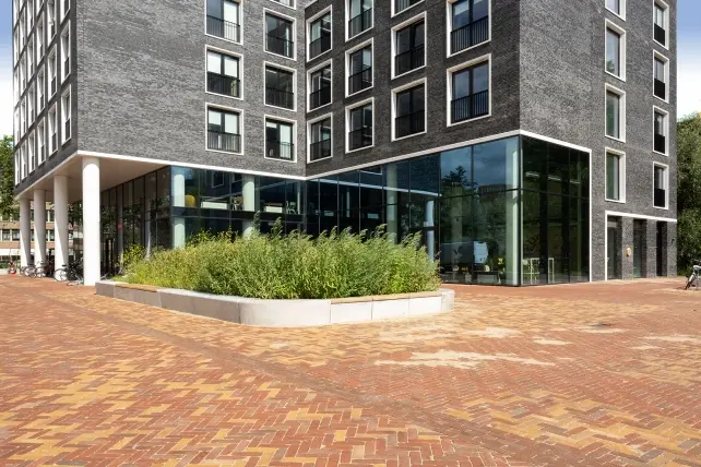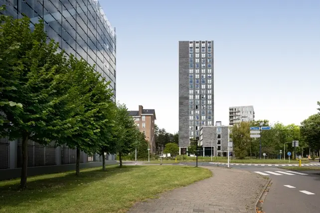 In het Bio Science Park in Leiden valt het nieuwe studentencomplex met 289 zelfstandige woningen meteen op. Het ontwerp van Klunder Architecten werd gerealiseerd door Waal Bouw. Stalku Geveltechniek zorgde voor de aluminium ramen. Aliplast Aluminium Systems ontwikkelde een speciaal profiel om de Star75 te kunnen afwerken met de dagkant. Deze werden als prefab-element geplaatst op de bouwplaats. Onderaan het gebouw koos men voor het MC Wall vliesgevelsysteem.