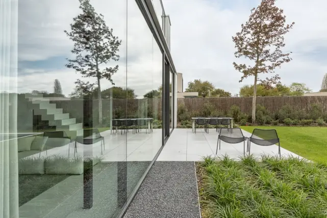 Voor de ramen werd gekozen voor het Star 75-systeem van Aliplast, terwijl de schuifpuien gerealiseerd werden met het Ultraglide-systeem. Beide systemen combineren esthetiek met uitstekende technische prestaties en bieden een hoge thermische isolatie, wat bijdraagt aan het indrukwekkende energiepeil van -16.