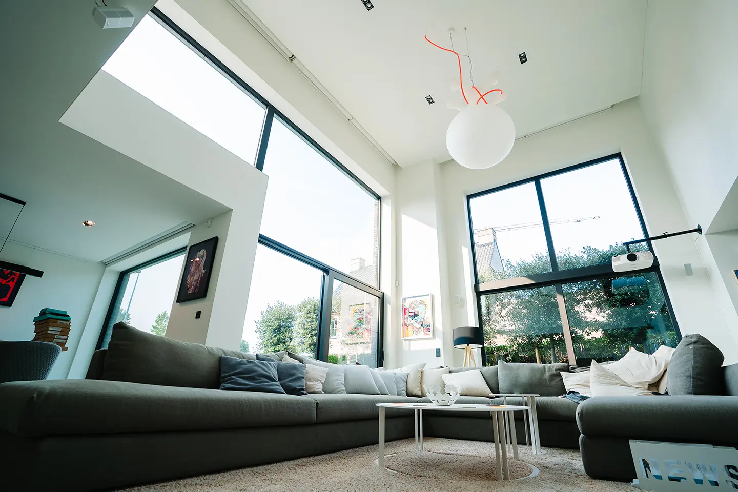 Aluminium is heel licht, maar tegelijkertijd ook héél sterk. Daardoor is het bijzonder geschikt voor grote raamoppervlaktes. Op die manier geniet je van veel lichtinval en een ruimtelijk effect. Aluminium is niet alleen geschikt voor grote ramen, maar is ook heel flexibel qua vorm: ronde of trapezium vormen zijn perfect mogelijk. Goed nieuws dus: geen standaardafmetingen, maar op maat van uw wensen.