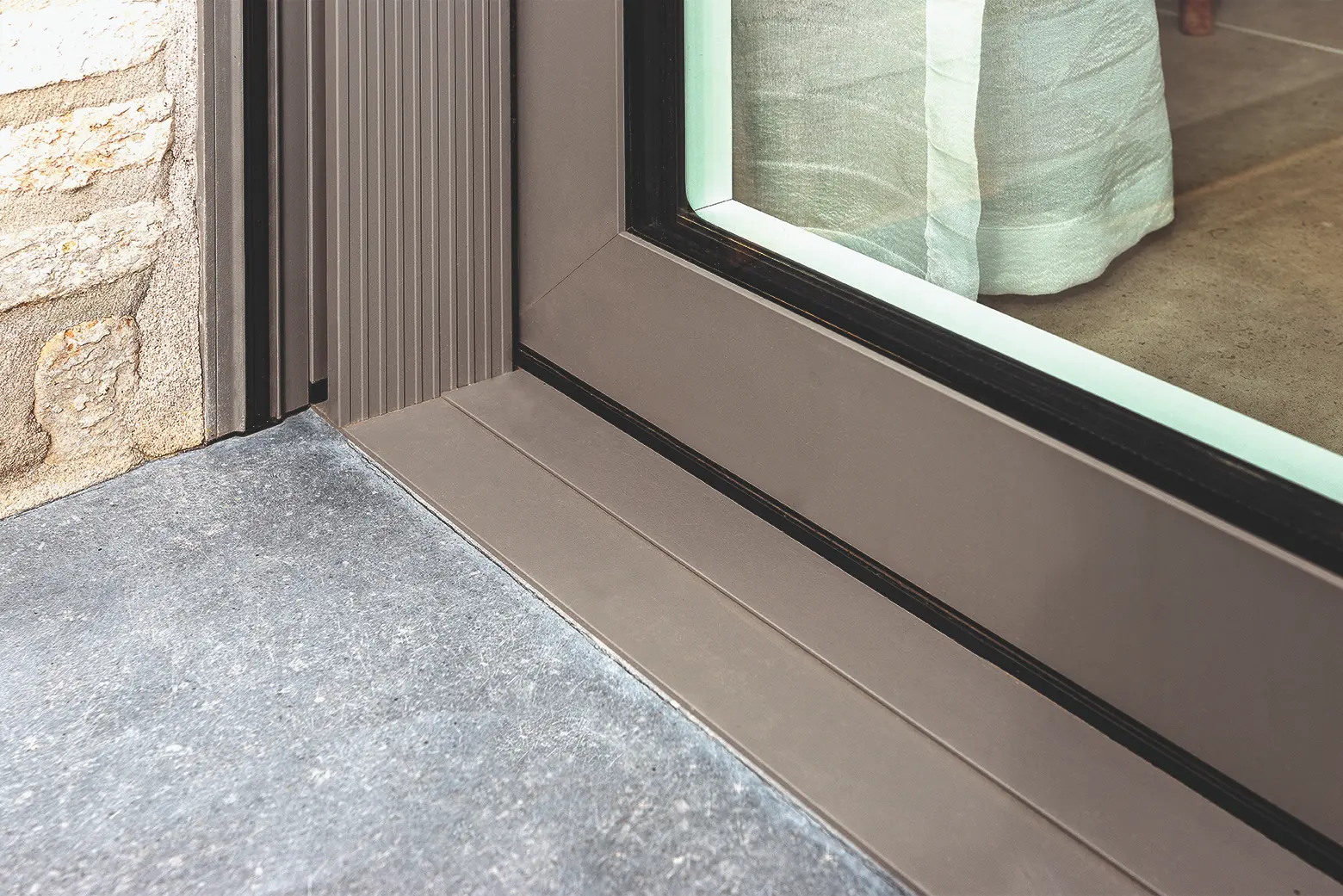 Een drempelloos schuifraam wordt in de hedendaagse architectuur steeds vaker toegepast. Dit schuifraam is uniek omdat het geen opstap meer heeft, noch van binnen naar buiten, noch van buiten naar binnen. Een groter ruimtegevoel en een makkelijke doorgang (voor kinderen, rolstoelgebruikers of minder mobiele personen) zijn de voordelen. Dankzij de verborgen gootlijn, hoef je geen schrik te hebben dat het water binnenkomt.