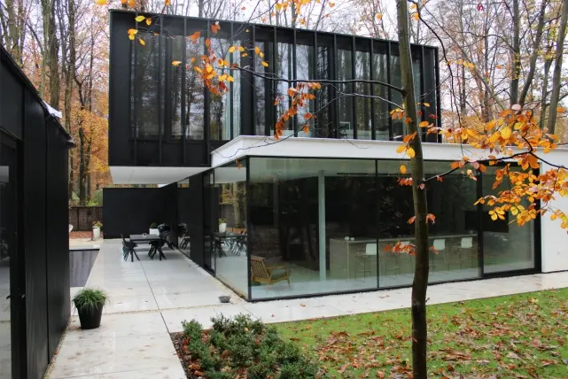 In einem bewaldeten Gebiet von Brügge lotet eine moderne Villa gekonnt die Grenzen zwischen modernem Design und natürlicher Umgebung aus.Das von Achtoptien Architecten entworfene Haus ist ein Meisterwerk, das sowohl in ästhetischer als auch in funktioneller Hinsicht besticht.Mit ihrer auffälligen weißen Fassade, der kontrastierenden Aluminiumverkleidung von Aliplast Aluminium Systems und den hochwertigen Fenstern ist diese Villa eine perfekte Verschmelzung von architektonischer Innovation und nachhaltiger Qualität.