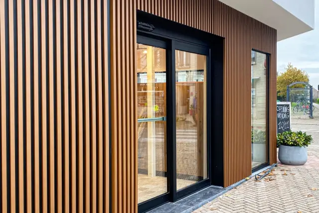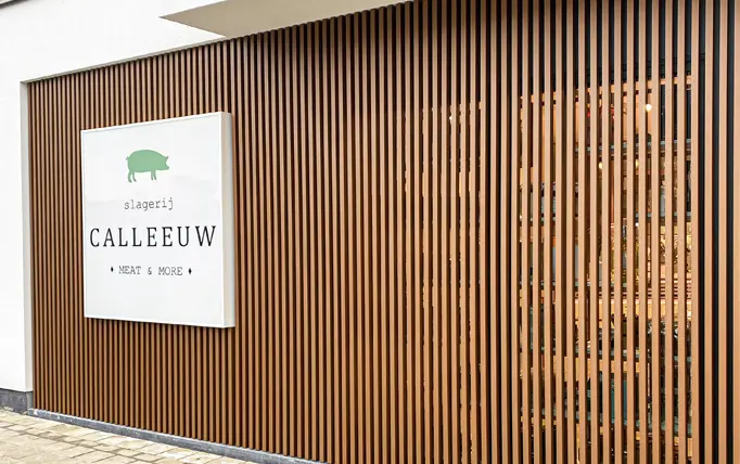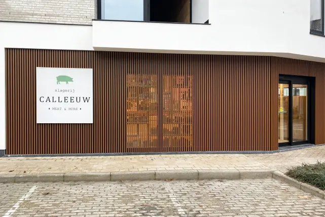 Our partner Aluvano installed the Deco Wall facade cladding for Slagerij Calleeuw. They chose a background profile in black and click profiles in RUST-TC. A very successful combination! The RUST-TC color is a powder coating alternative to Cortensteel. It is one of the colors on which Aliplast gives a 25-year color guarantee.