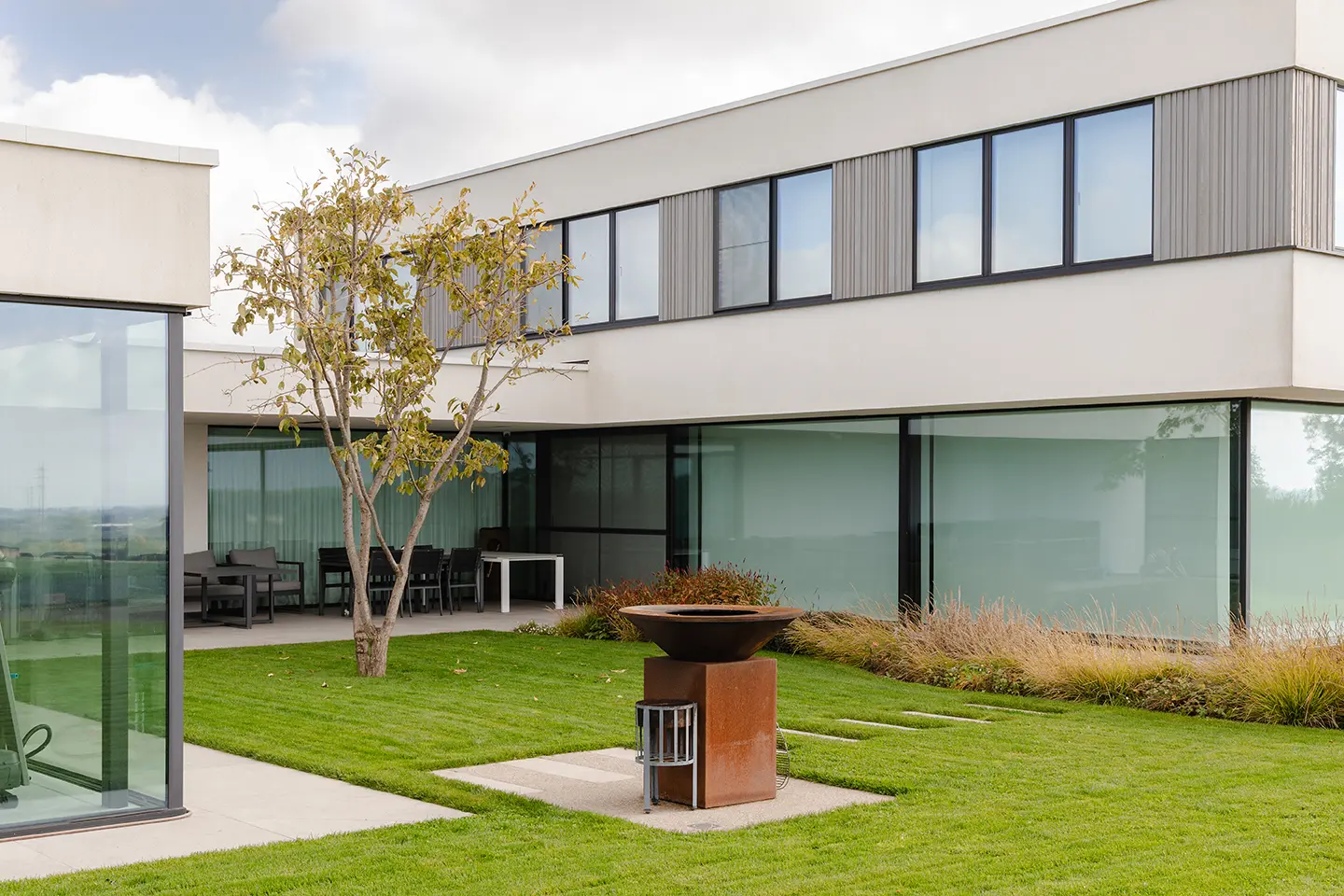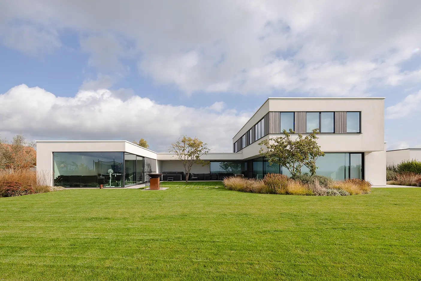 In this article, we highlight a stunning residence where these principles come together flawlessly. A home in which architecture and its surroundings blend harmoniously, thanks to the thoughtful use of impressive glass surfaces and slim aluminium profiles.