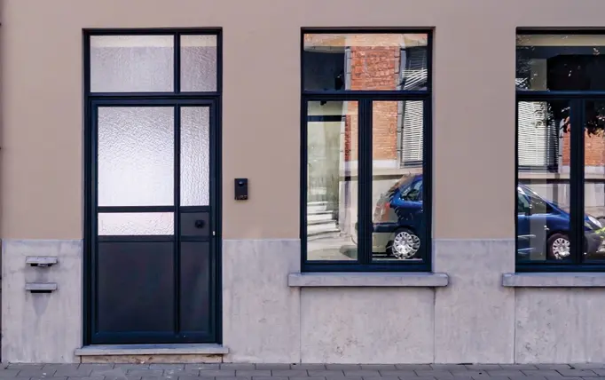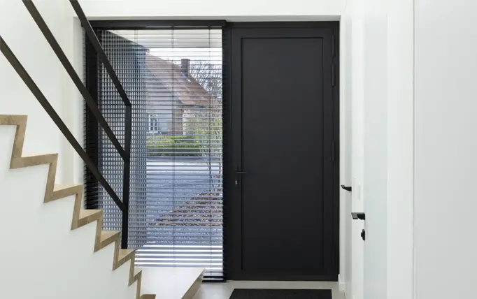 Entièrement compatible avec le style de vos fenêtres. Vous choisissez une porte en verre ou une porte avec un panneau en aluminium ou une combinaison des deux. Vous souhaitez une porte avec une partie supérieure arrondie ? C'est possible ! Nous plions les profilés à la taille souhaitée.