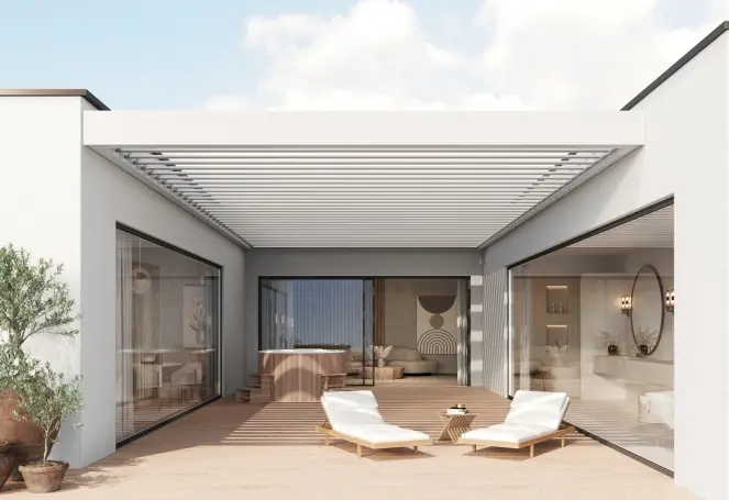 - Avec lamelles orientables ou en toiture plate et même vitrée