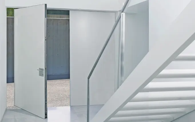 Een pivotdeur of taatsdeur is gegarandeerd een fantastische binnenkomer. De scharnieren van de deur zijn verankerd in de vloer en het plafond en daardoor draait de deur om een verticale as. Dit resulteert in een minimalistische look die zorgt voor strakheid en eenvoud.