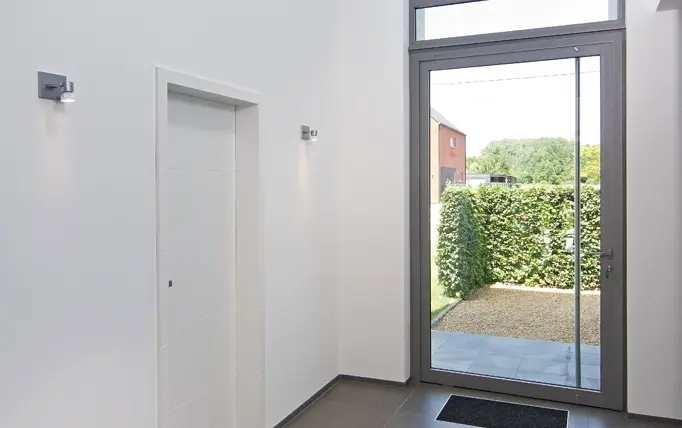 Voor de opendraaiende vleugel kan je kiezen tussen glas of een aluminium paneel of een combinatie van beiden. Is je gevel bekleedt met aluminium gevelbekleding, dan kan je deze laten doorlopen over je deur, waardoor het een mooi geheel vormt.