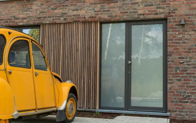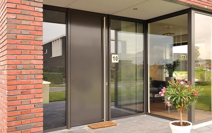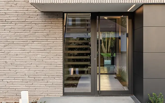 Omdat de opendraaiende vleugel in lijn ligt met de deurkader - zowel aan de binnenkant als aan de buitenkant - geeft dit aan je deur een strakke look. Kies zelf voor een deur in glas of met vast aluminium paneel of een combinatie van beiden.