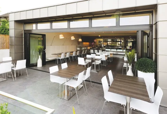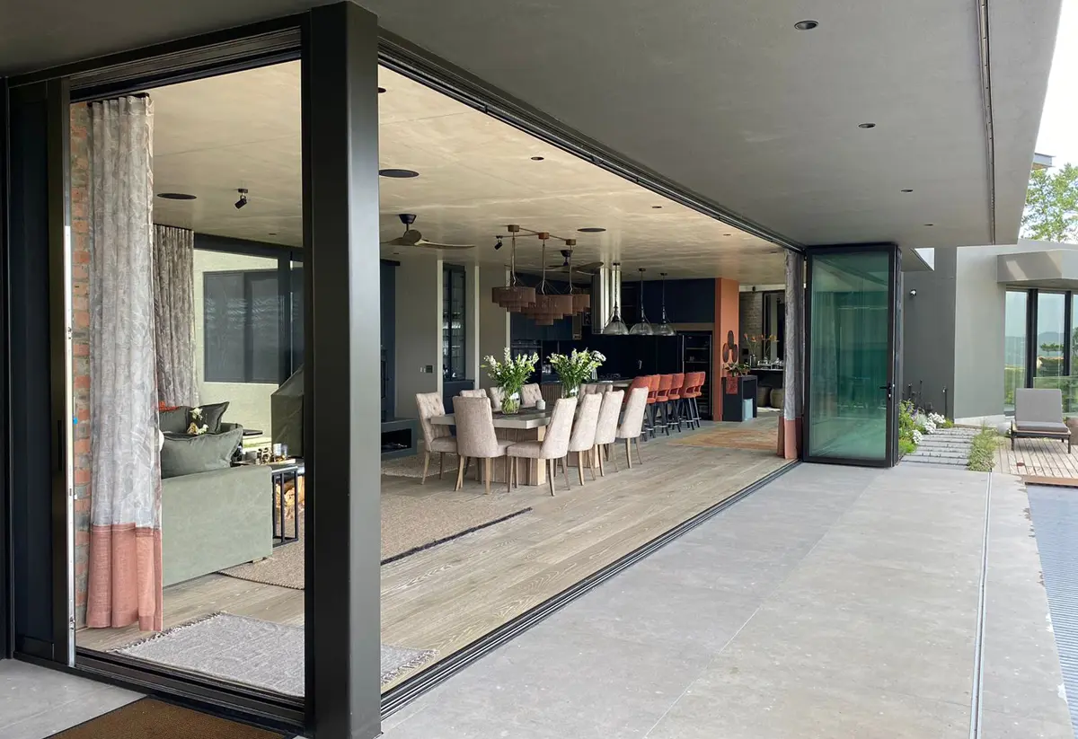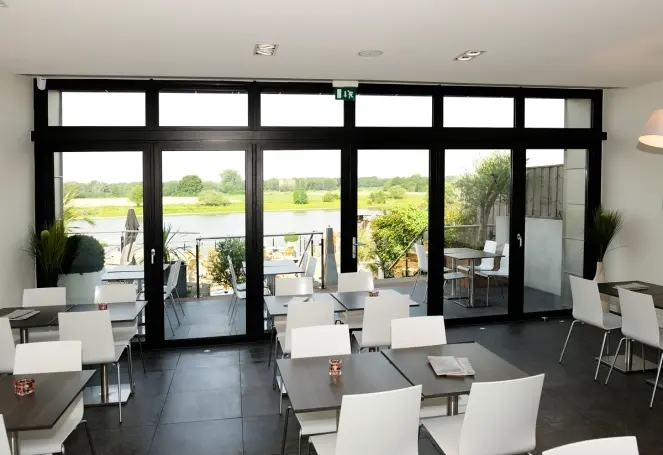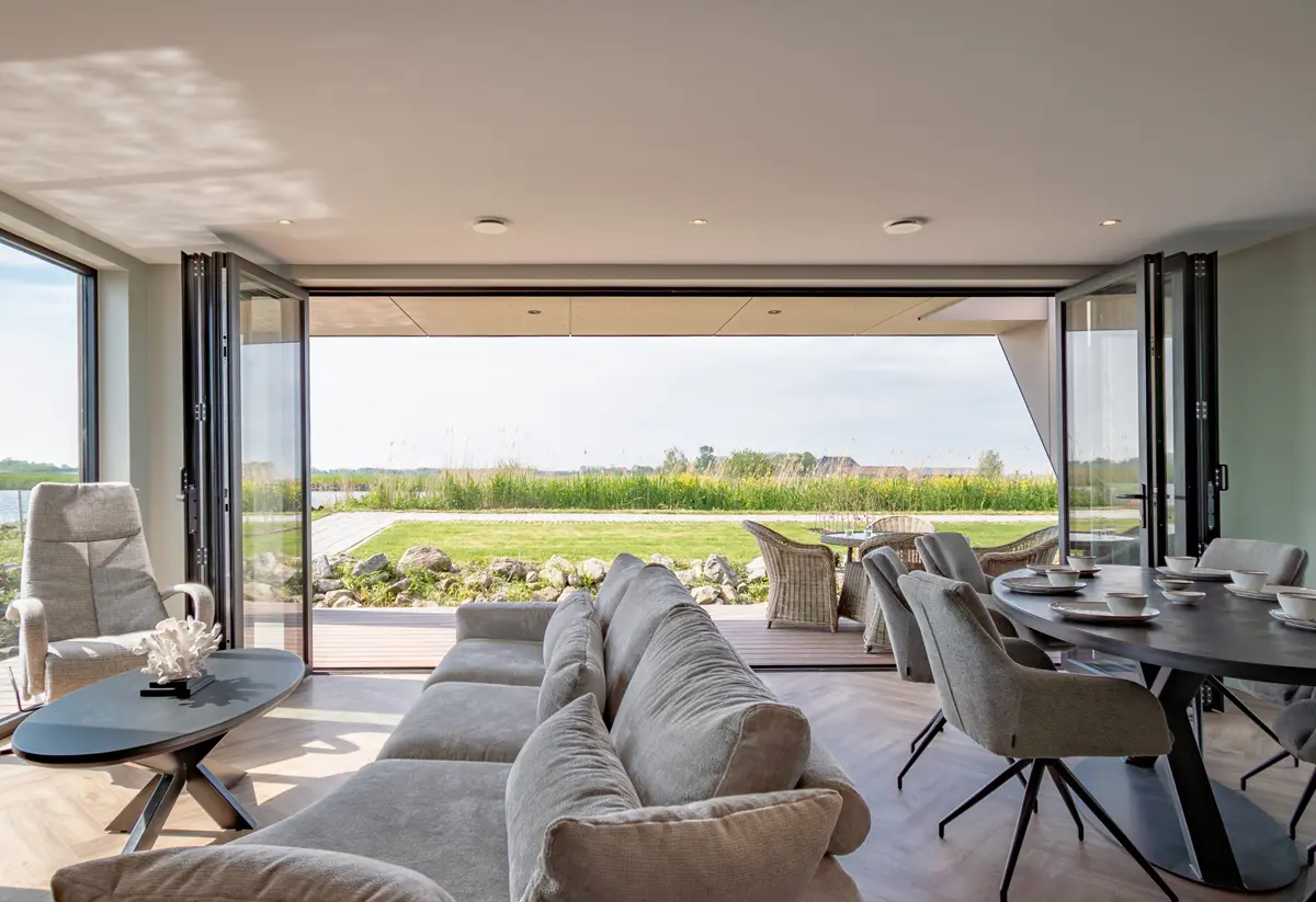 Met het Panorama vouwwandsysteem met thermische onderbreking kunt u brede doorgangen creëren. De scharnieren zijn tussen de vleugels geplaatst en kunnen zowel naar rechts als naar links worden gevouwen om ruimte te maken voor een maximale opening. Ook een open hoek van 90° is mogelijk. 2 bodemoplossingen: met kader rondom of met vlakke dorpel.